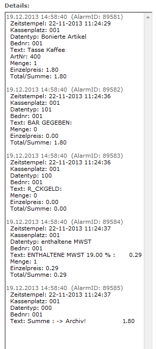 Kasseneingaben werden parallel zum Video aufgezeichnet.