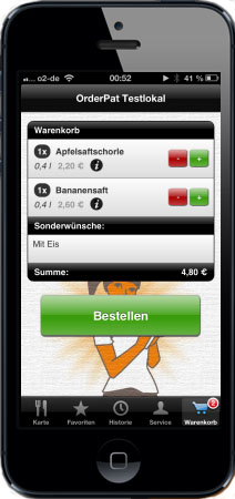 the order App! OrderPat ist eine kostenlose App für iPhone und Android mit der Gäste in Restaurants, Bars und Hotels Getränke und Speisen einfach und bequem mit dem eigenen Handy bestellen können.
